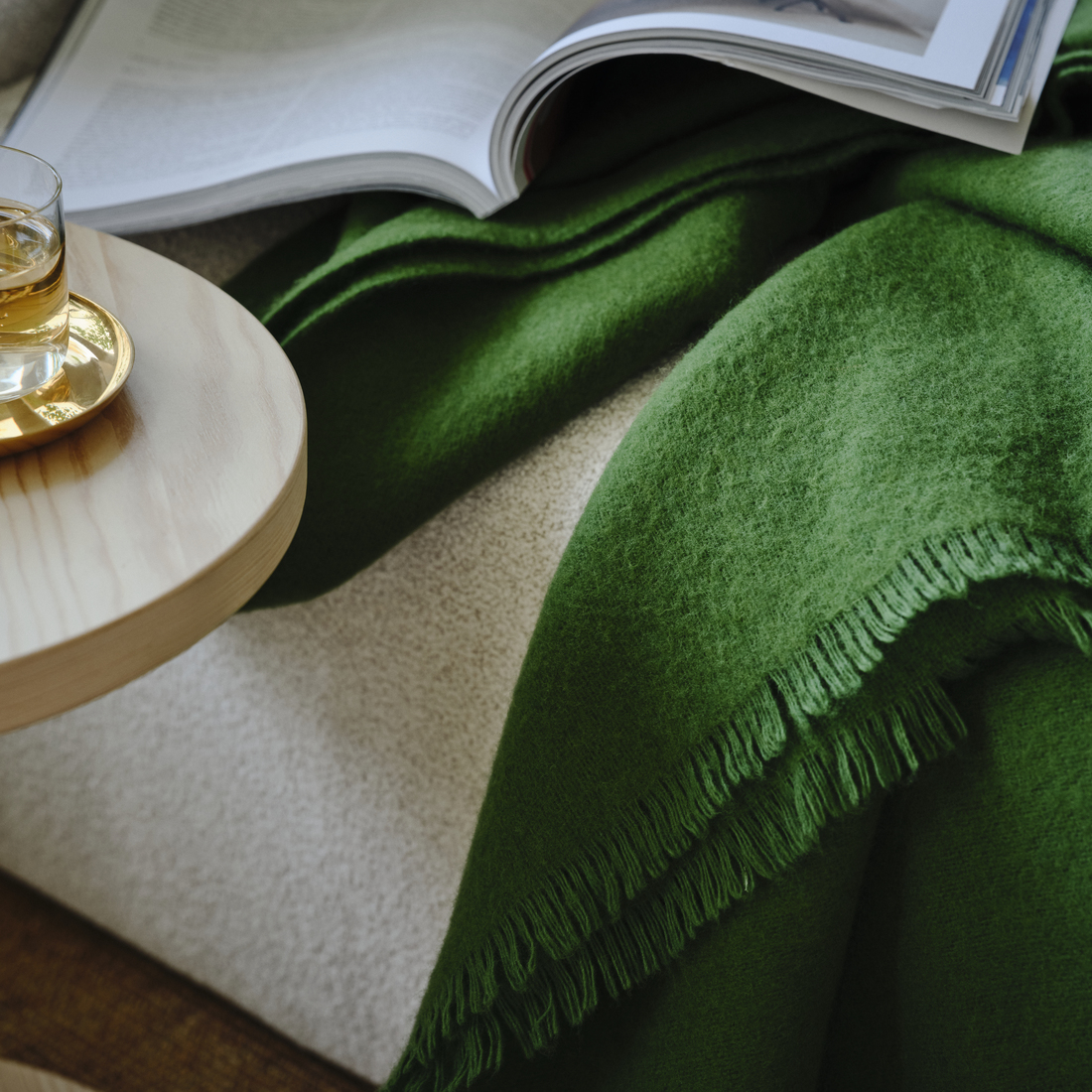 Warm and generously sized wool/merino wool throw in green. Design by Paulin Machado as part of the IKEA STOCKHOLM 2025 collection where each piece is a celebration of Scandinavian design.