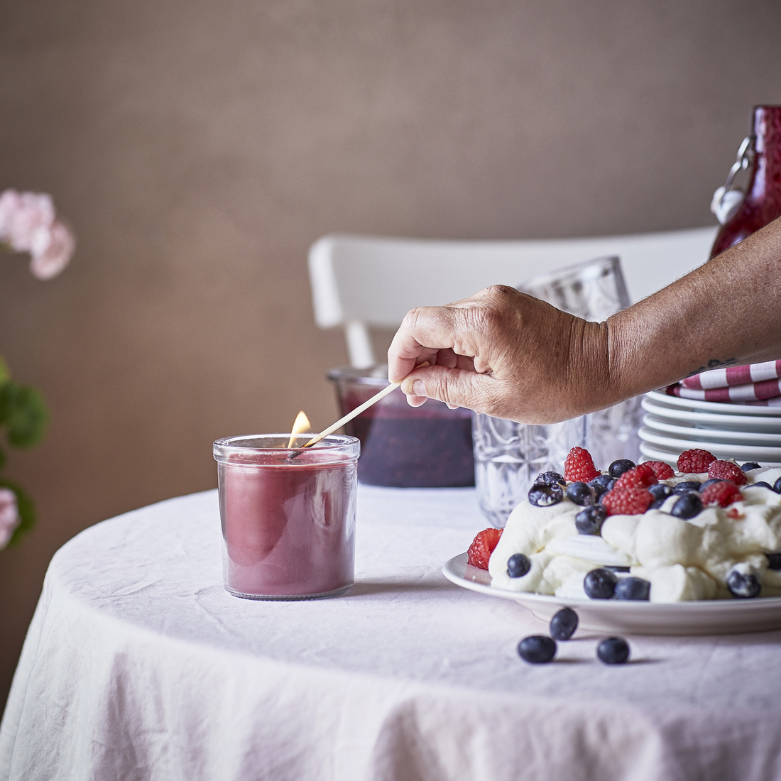 What’s the scent of home for you? STÖRTSKÖN scented candle offers a joyful feel of berries, leafy greens and violets. Welcome home to a light and happy atmosphere inspired by sunny summer days