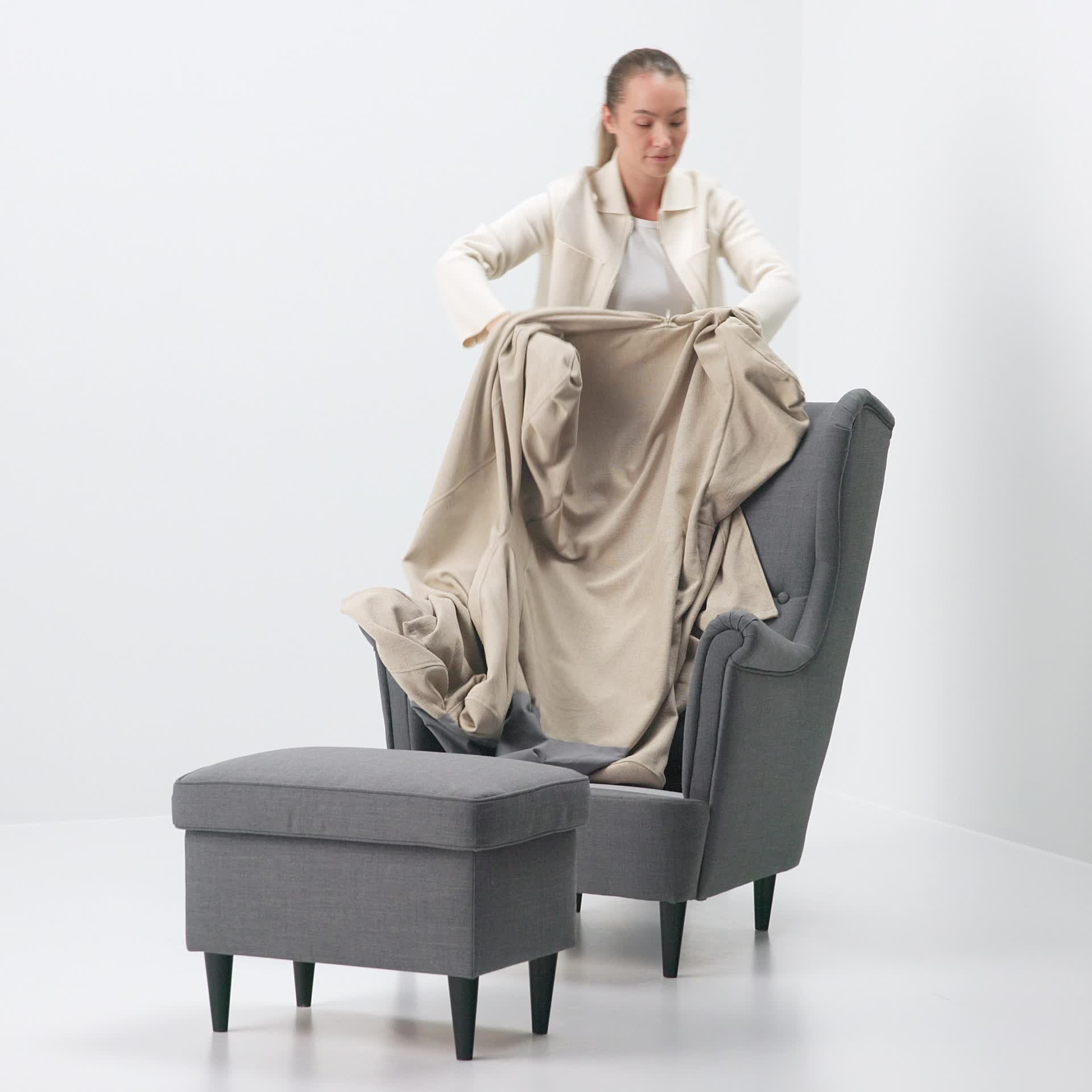STRANDMON slipcover for armchair / footstool, Stigsbo multicolor / black