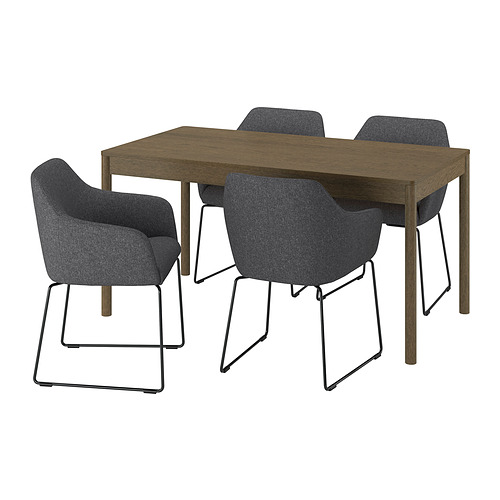 TONSTAD / TOSSBERG table and 4 chairs, brown oak veneer / Gunnared dark grey black