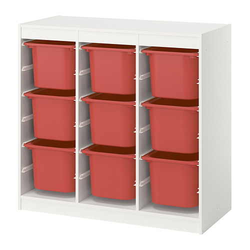 TROFAST storage combination with boxes, room divider / white red