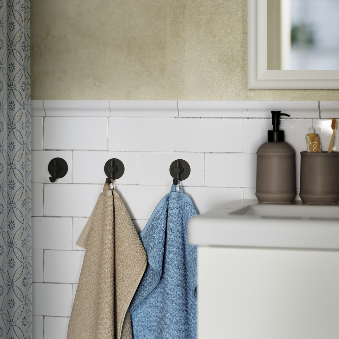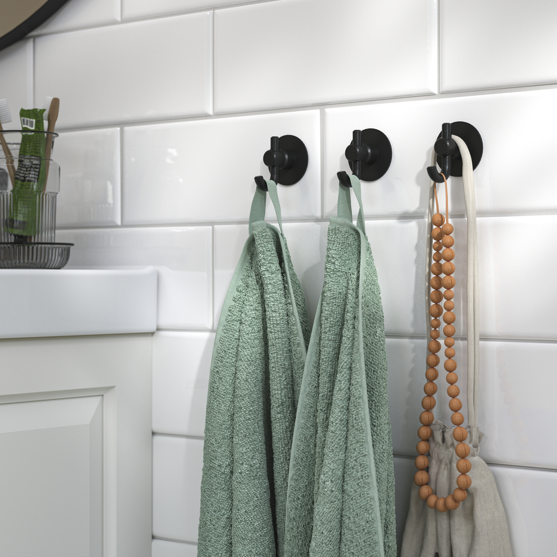 The VALASJÖN series has a traditional style expression with a focus on function and simplicity. The tops of these beautiful hooks allow you to hang several things and organize them better.