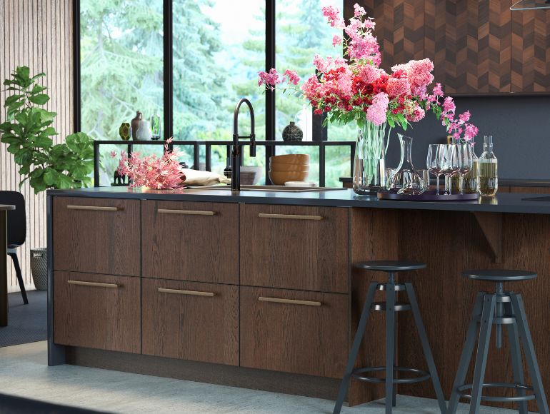 Let's get a kitchen with the style you deserve. We show you a contemporary kitchen, stylishly adapted to the times, mixing dark tones and light colors to create a sense of depth and dynamism that catches us from the first moment. A huge island and interior organizers combine design and functionality for you to decide what you are going to show and what you are going to hide.