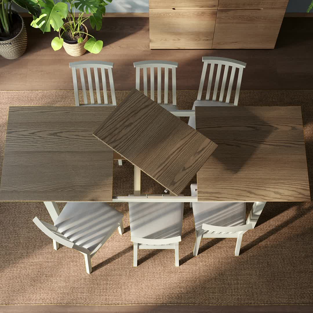 El tablero de extensión aumenta la superficie de la mesa y permite que entren dos personas más.