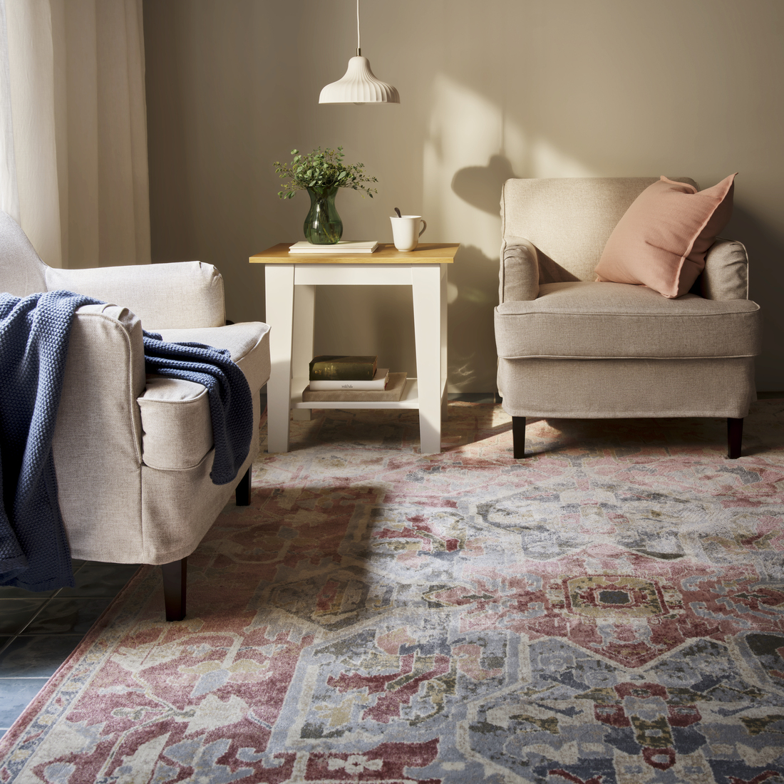 La mesa auxiliar ÄMMARYD ofrece espacio para las reuniones con amigos y las noches de cine más tranquilas con la familia. El diseño tradicional, con un tablero de madera y patas distintivas, le da un estilo artesanal.