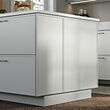 Este panel lateral con una estructura fina combina con los frentes ASPUDDEN en gris claro para ampliar el diseño en los laterales de los gabinetes bajos. Con un atractivo minimalista, la serie ASPUDDEN le da un estilo atemporal a tu cocina.