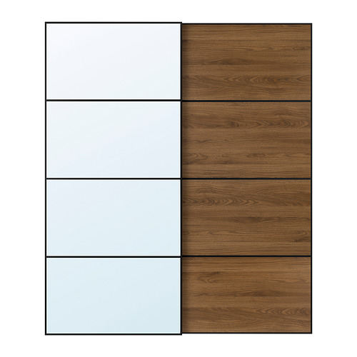 AULI / MEHAMN par de puertas corredizas, negro espejo de vidrio / doble cara nogal