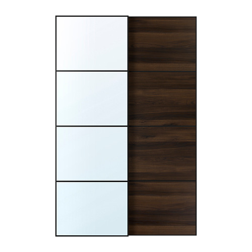 AULI / MEHAMN par de puertas corredizas, negro espejo de vidrio / doble cara efecto roble en marrón oscuro