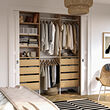 El sistema de almacenamiento AURDAL permite personalizar una solución para cualquier armario o vestidor. La bonita chapa cepillada confiere un acabado texturizado característico de la madera.