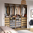 El sistema de almacenamiento AURDAL permite personalizar una solución para cualquier armario o vestidor. La bonita chapa cepillada confiere un acabado texturizado característico de la madera.