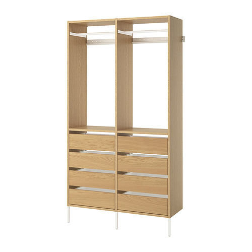 El sistema de almacenamiento AURDAL permite personalizar una solución para cualquier armario o vestidor. La bonita chapa cepillada confiere un acabado texturizado característico de la madera.