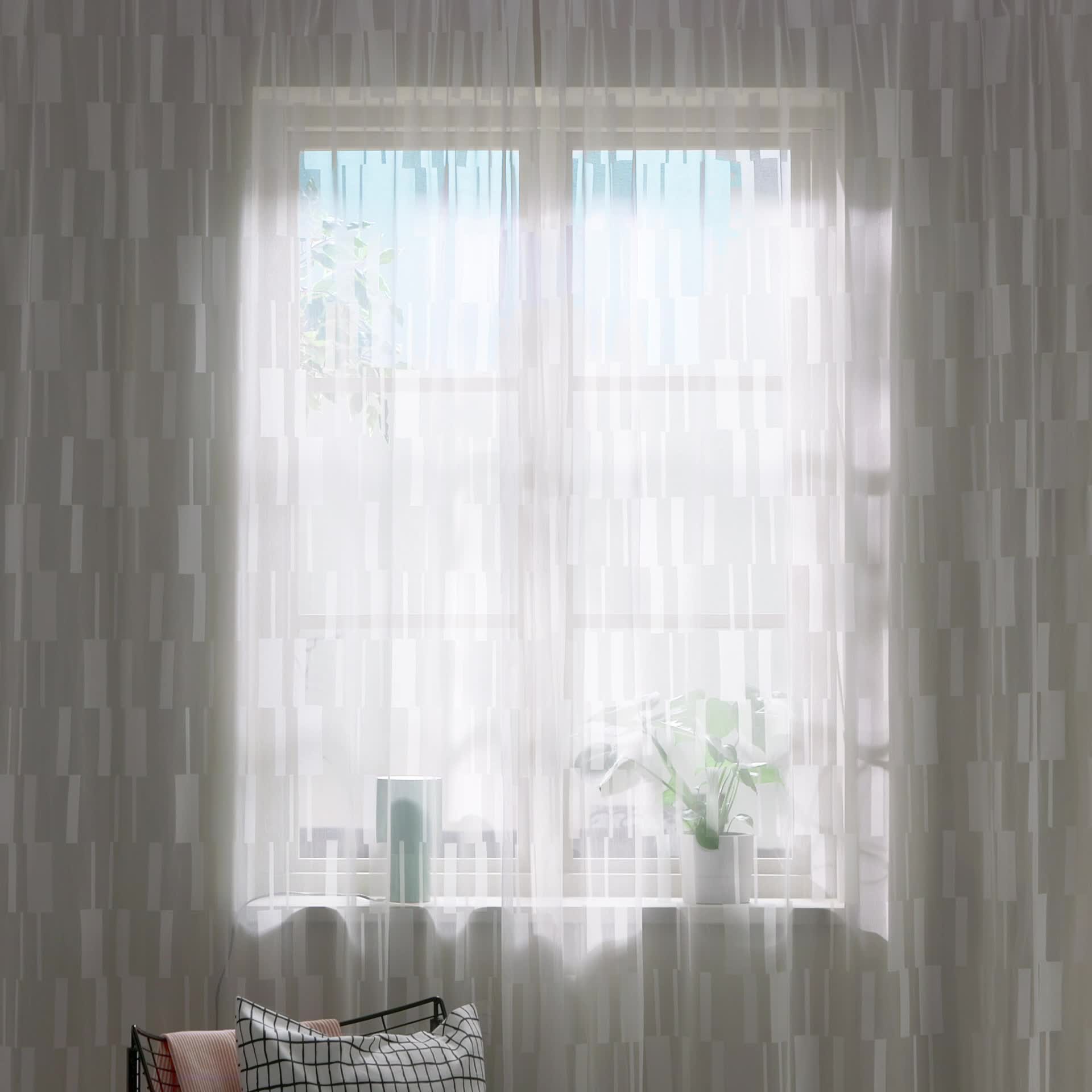 Las distintas transparencias de las cortinas de red BERGNEJLIKA crean un patrón que juega con la luz. El cabezal multidireccional se puede usar con una barra o riel.