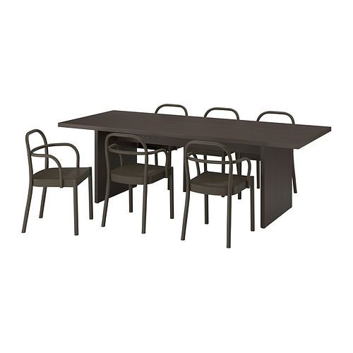 BERGSHYTTAN / STOCKHOLM 2025 mesa y 6 sillas, chapa de fresno marrón oscuro / marrón oscuro
