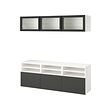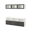 BESTÅ combinación almacenaje TV con guía para gaveta, apertura a presión, HANVIKEN blanco / SINDVIK vidrio transparente, 70 7 / 8 "x16 1 / 2 "x75 5 / 8 "