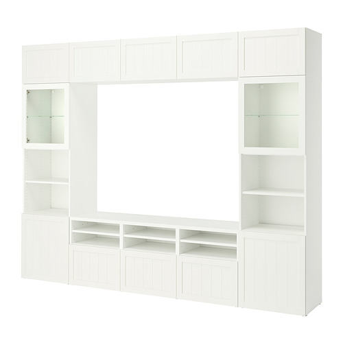 BESTÅ comb almacenamiento TV / prta vidrio, blanco / Pipmakare blanco