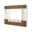 BESTÅ mueble TV con guía para gaveta con cierre suave, LAPPVIKEN efecto de nogal / SINDVIK blanco vidrio incoloro, 118 1 / 8 "x16 1 / 2 "x91 "