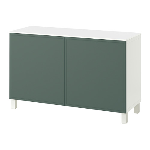 BESTÅ combinación almacenamiento+puertas, blanco / Krukmakare gris verdoso oscuro
