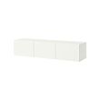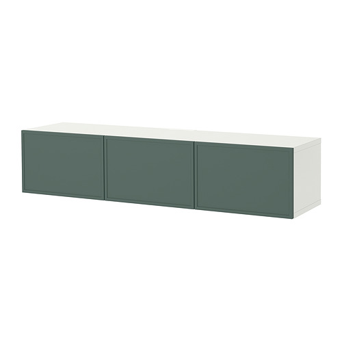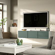 BESTÅ mueble para TV+puertas, blanco / Krukmakare gris verdoso oscuro