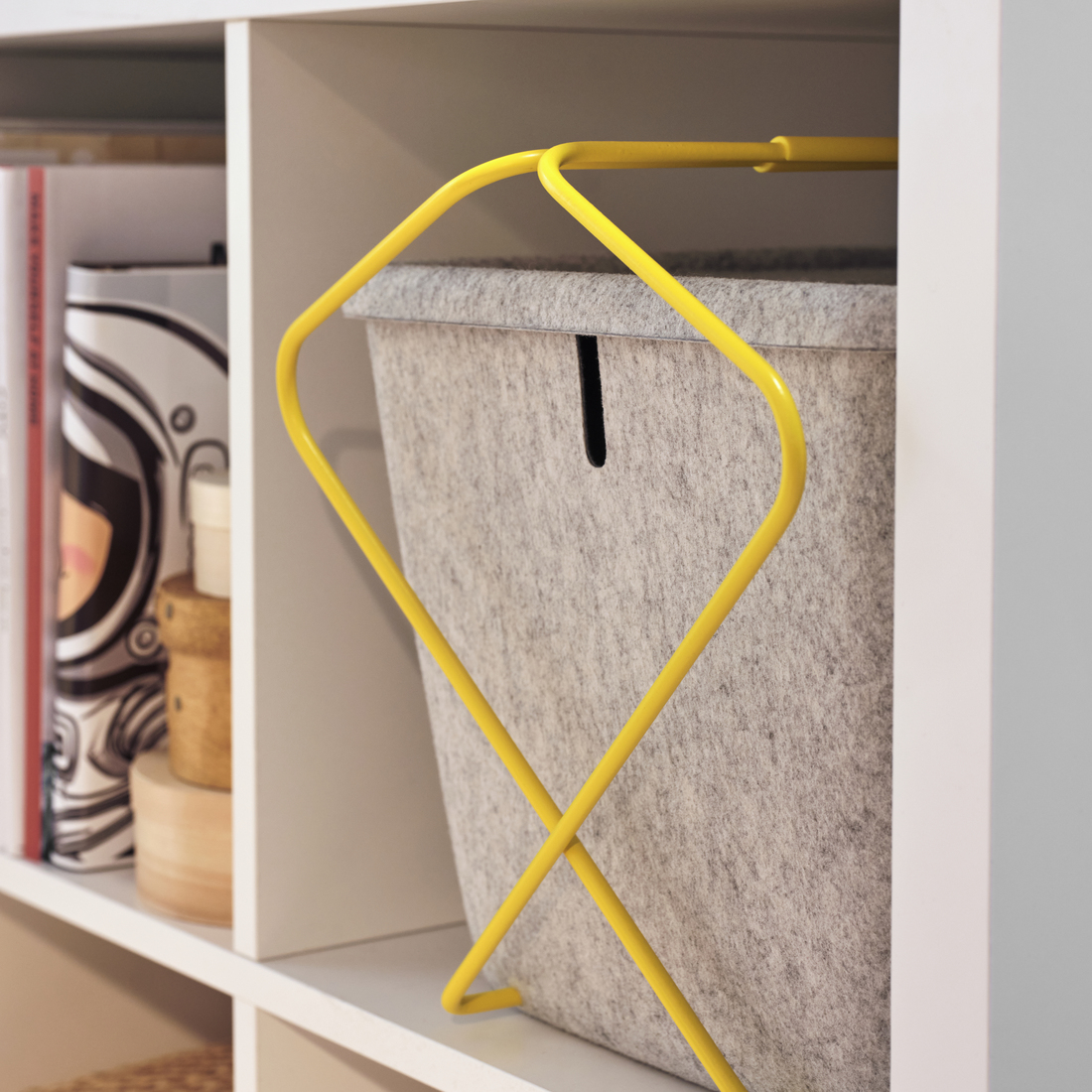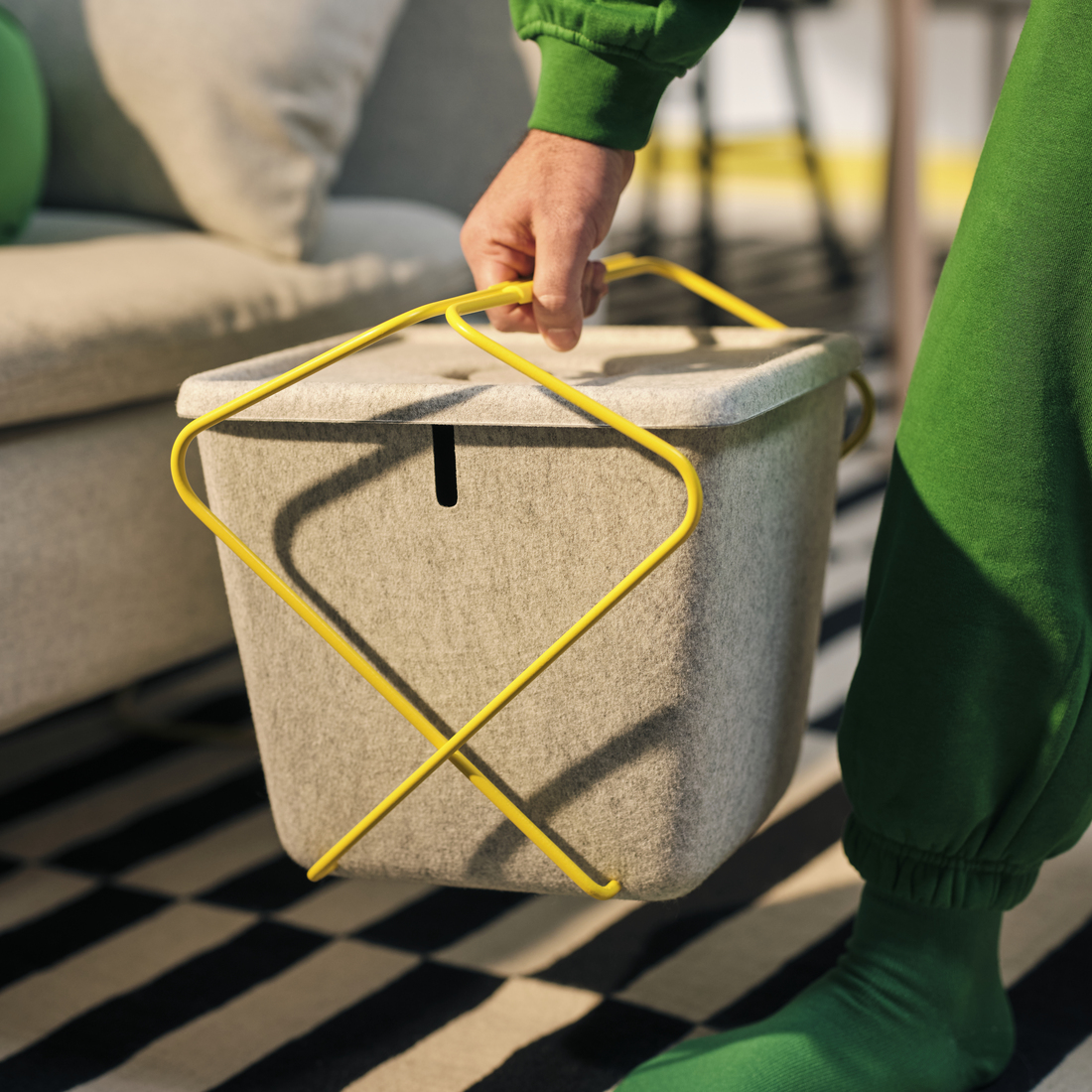 Esta canasta de fieltro es ideal para guardar tus accesorios gaming. Las asas te permiten llevarla fácilmente donde quieras, y la tapa protege tus cosas del polvo. Además, cabe perfectamente en estanterías KALLAX.