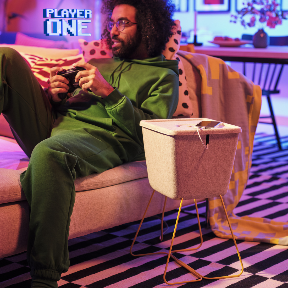En esta canasta de fieltro con tapa puedes guardar de manera segura todos tus accesorios gaming y protegerlos del polvo.