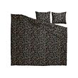 El juego de funda nórdica BRUDKRUSBÄR está hecho de 100% algodón orgánico con certificación GOTS, un material natural que transpira, absorbe la humedad y resulta muy cómodo al tacto. Tiene un estampado de flores en espiral sobre una base negra.