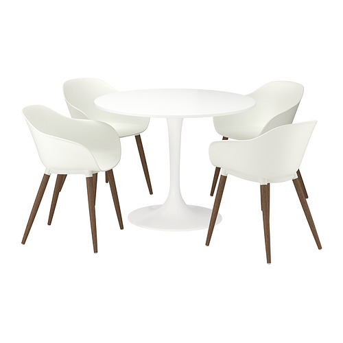 DOCKSTA / GRÖNSTA mesa y 4 sillas con reposabrazos, blanco / blanco