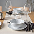 Un bonito equilibrio entre el minimalismo y la textura artesanal. La vajilla FORELLTETRA de porcelana blanca presenta un estilo sencillo y elegante, con un acabado divertido e irregular para potenciar el ambiente relajado.