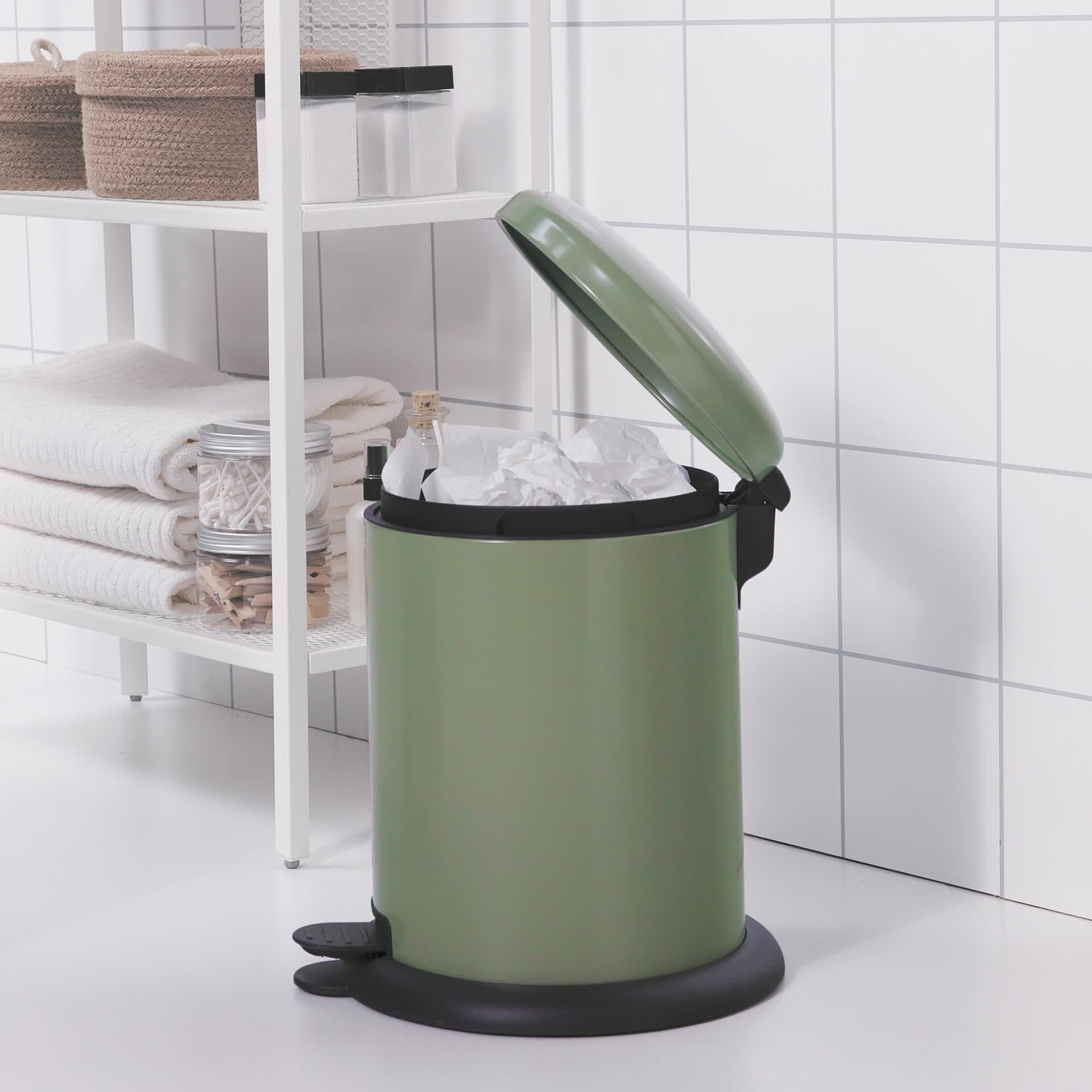Un cubo con pedal decorativo en un tamaño más pequeño que hace que sea fácil encontrarle sitio en la oficina o el baño. Fácil de usar, vaciar y mover gracias a la tapa de cierre suave, al cubo interior removible y al asa.