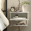 El tablero de aglomerado y laminado ofrece una superficie práctica que amortigua el sonido cuando uses la mesita de noche.