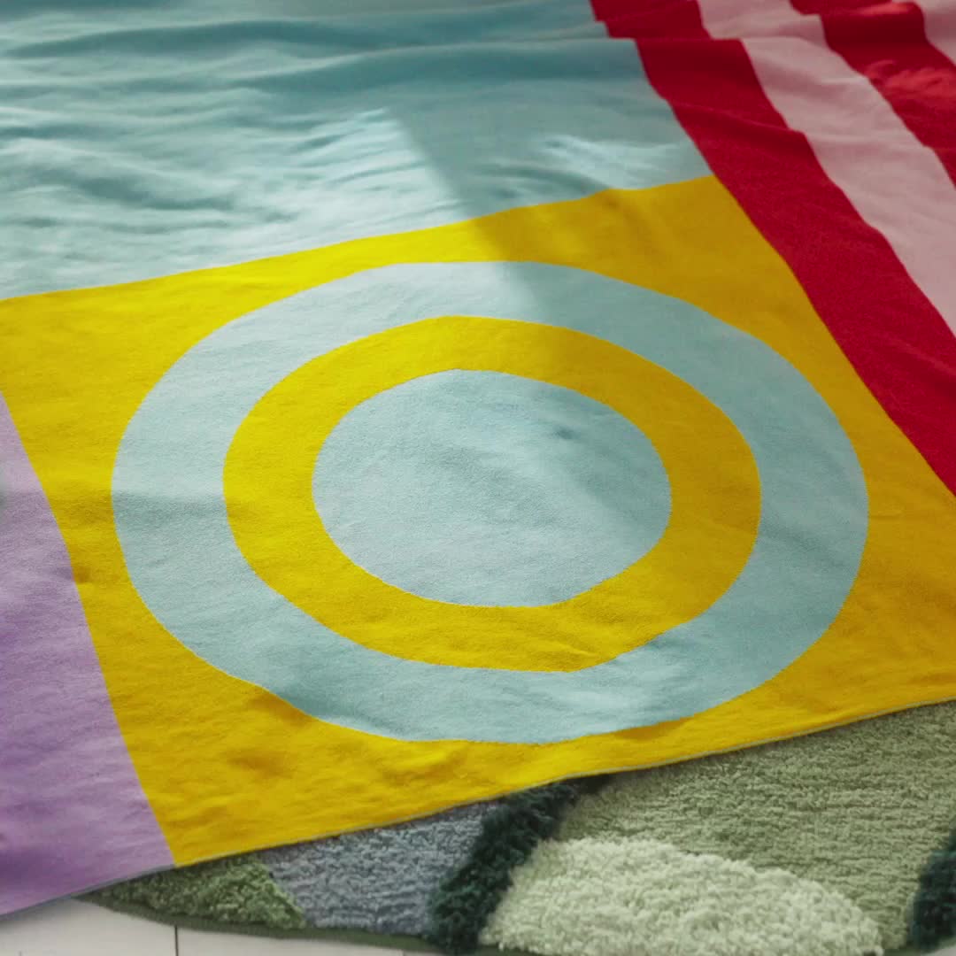 En un momento, es una cobija acogedora y colorida en la que acurrucarse, y al siguiente, una divertida cobija para apuntar al blanco, jugar al tres en raya o jugar con los coches. Confeccionada en suave algodón orgánico con certificación GOTS.