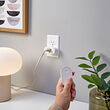 Usa la aplicación IKEA Home smart, un control remoto o un sensor de movimiento para encender o apagar el enchufe. Puedes conectar hasta 10 enchufes a un control remoto o a un sensor de movimiento.