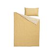 El juego de funda nórdica HAMNSENAP presenta un estampado geométrico y nostálgico por un lado y rayas amarillas por el otro. Para cambiar de estilo, basta con darle la vuelta. La mezcla suave de algodón y viscosilla transpira y presenta un fino brillo.
