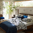 Potencia la expresividad con el juego de funda nórdica HÄRLIR, con llamativas flores negras y azules con inesperados motivos inspirados en la naturaleza. Hecho de una mezcla de algodón y lyocell suave, absorbente, transpirable y duradera.
