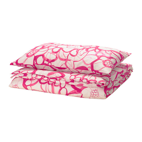 Apuesta al rosa con el juego de funda nórdica HÄRLIR, con llamativas flores con inesperados motivos inspirados en la naturaleza. Hecho de una mezcla de algodón y lyocell suave, absorbente, transpirable y duradera.