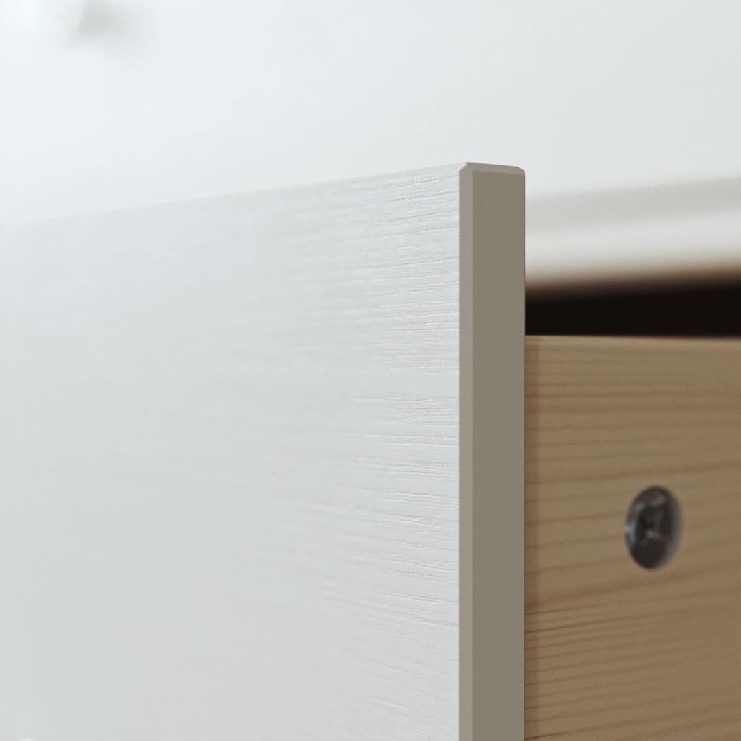 La madera de pino pintada aporta mayor resistencia a la superficie de la cómoda y hace que sea más fácil de mantener.
