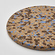 Este salvamanteles protege mesas, barras de cocina y manteles de las marcas y los rayones provocados por el calor. El corcho natural y el motivo moteado con lunares azules irregulares le dan encanto a las comidas diarias y a las ocasiones especiales.