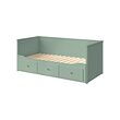 El sofá cama HEMNES en verde grisáceo lleva los apacibles colores de la naturaleza a tu hogar. Es buena idea si tu vivienda es pequeña, ya que lo puedes usar como sofá, cama individual o doble y solución de almacenamiento al mismo tiempo.