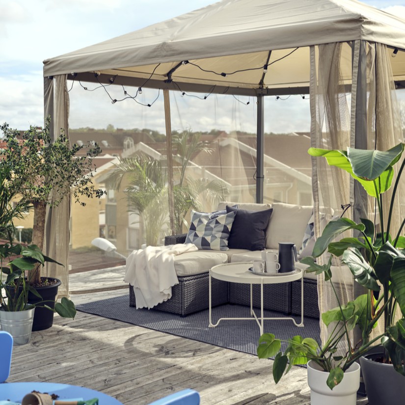 En caso de lluvia intensa o viento fuerte, retira el techo del cenador para evitar que se estropee.