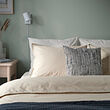 ¡Qué transformación! Este cojín increíblemente suave está hecho de 100% poliéster reciclado. La tela cuenta con una textura cepillada y un estampado gris de estilo atemporal que combina a la perfección con la funda nórdica CYMBALBLOMMA.