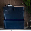 Esta caja brillante es muy práctica para organizar accesorios de escritorio o dispositivos electrónicos. Complétala con una de las tapas que se venden por separado si quieres proteger el contenido del polvo o apilar varias cajas.
