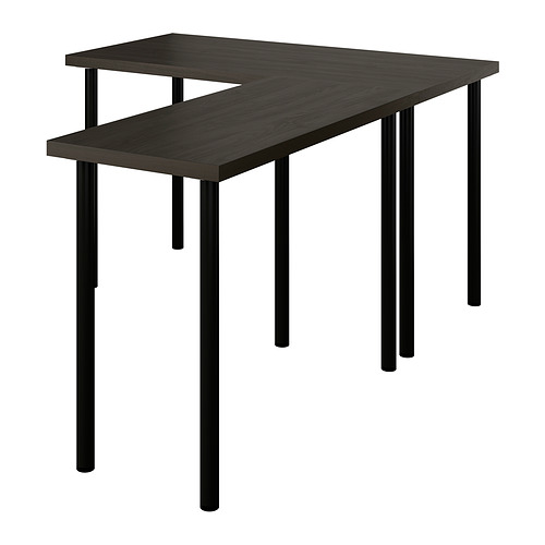 LAGKAPTEN / LINNMON escritorio en forma de L, negro-marrón / negro