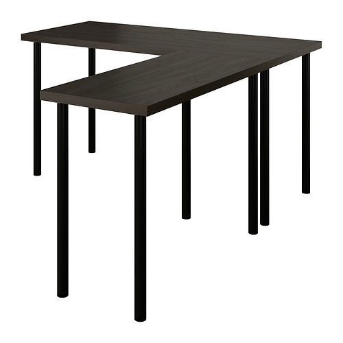 LAGKAPTEN / LINNMON escritorio en forma de L, negro-marrón / negro