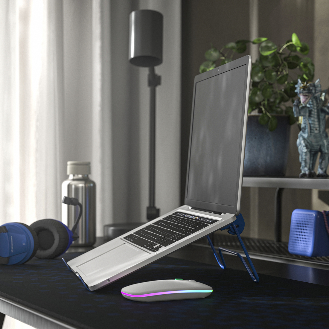 LÅNESPELARE soporte para portátil, plegable / azul, 9 7 / 8 "x9 7 / 8 "x3 7 / 8 "