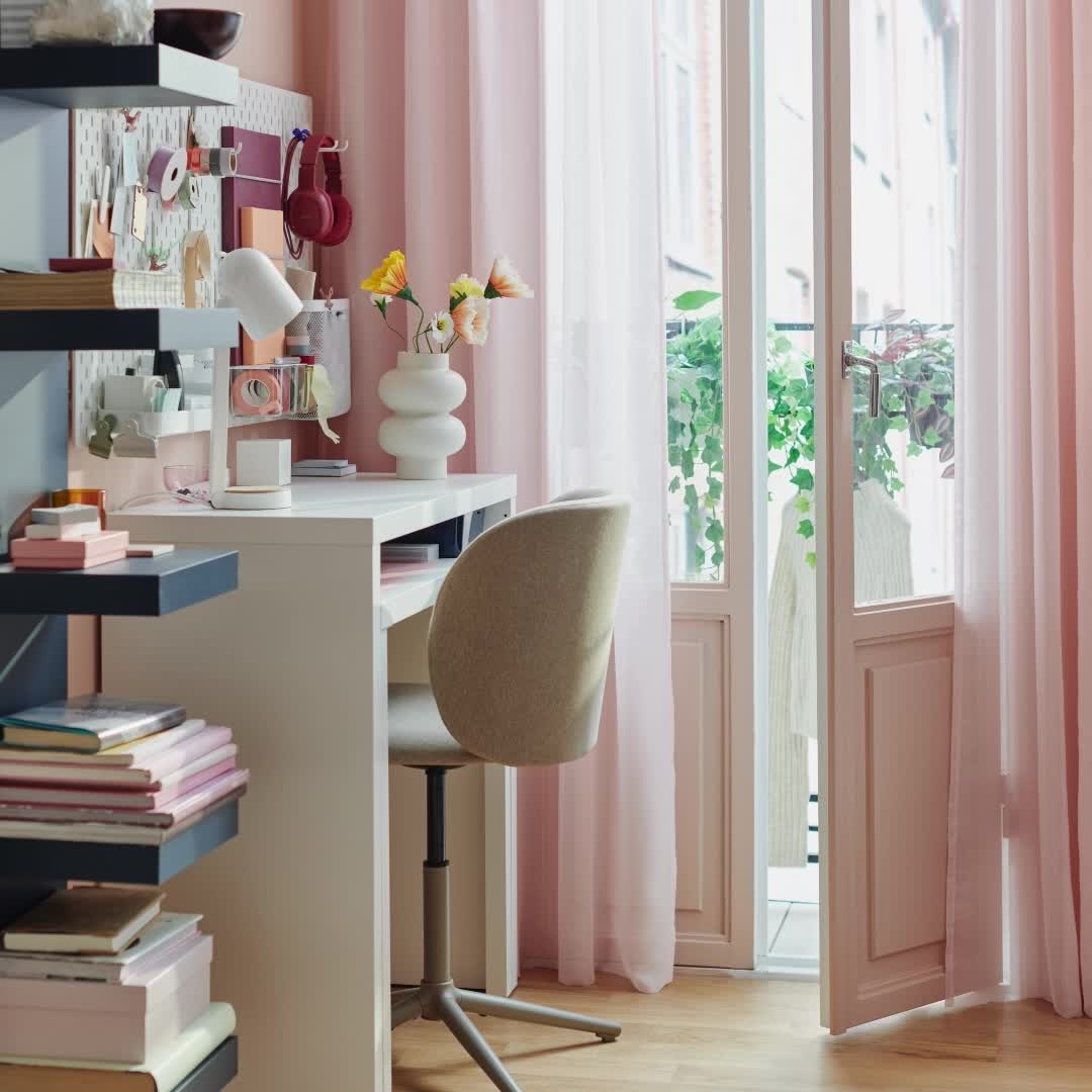 Gran comodidad en un espacio pequeño. Este escritorio extraíble cabe en los rincones más reducidos, pero se puede ampliar para que tengas espacio para todos tus proyectos creativos y aficiones. Compacto cuando lo necesitas, espacioso cuando quieras.