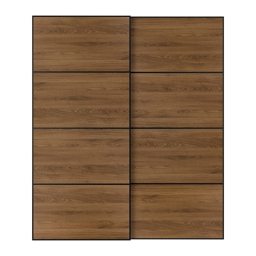 MEHAMN par de puertas corredizas, negro / doble cara nogal