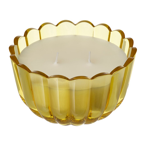 vela arom recipiente vidrio 2mechas, flor cítrica verde amarillento vivo