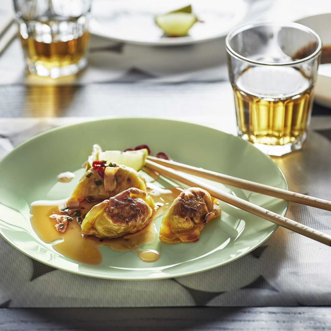 Puedes combinar la vajilla OFTAST verde con piezas de vajilla blancas de la misma serie para darle un toque personal y moderno a la mesa.