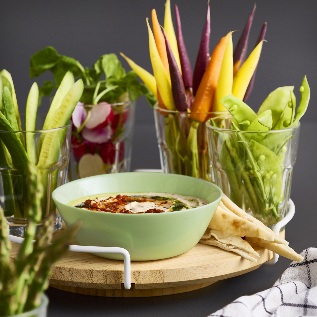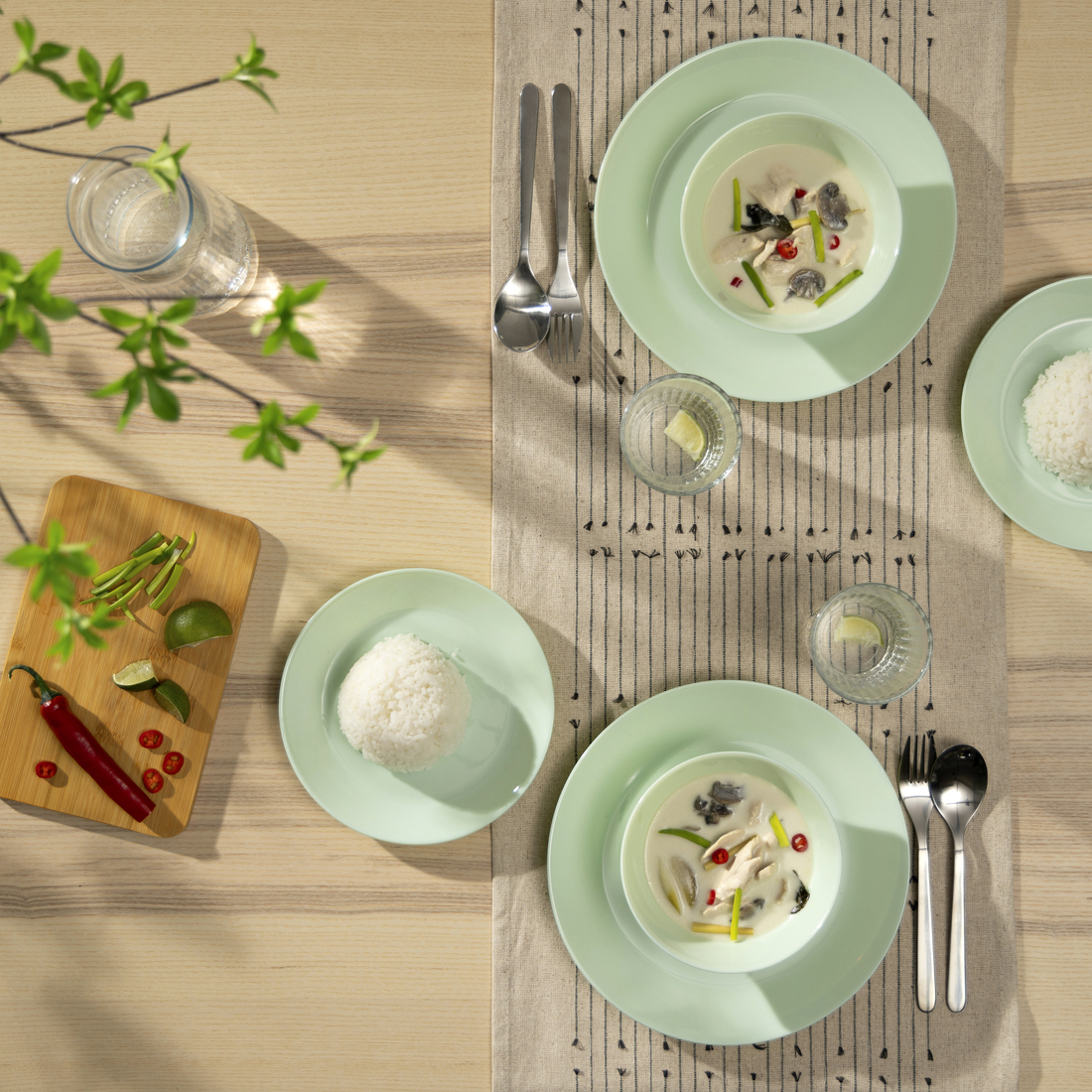 Puedes combinar la vajilla OFTAST verde con piezas de vajilla blancas de la misma serie para darle un toque personal y moderno a la mesa.