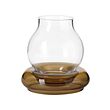 El vidrio transparente, combinado con el tinte marrón, refleja y potencia la cálida luz de la llama de la vela.