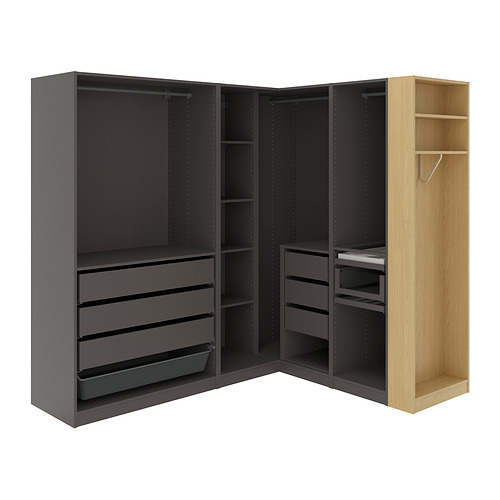 PAX armario esquinero, gris oscuro gris oscuro / efecto de roble